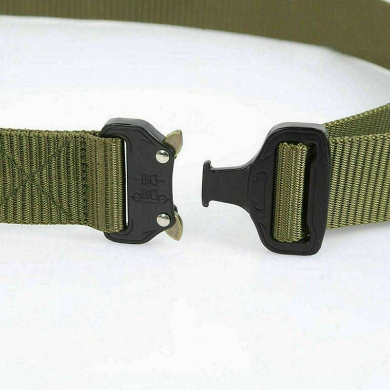 The tactical belt is with a metal alloy buckle; it can bear a large pulling force.
